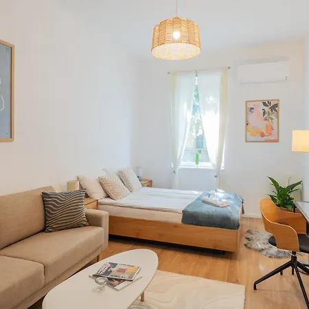 Business And Pleasure Apartment With Air Condition Budapest, di 23 m², proporziona prossimità ad attrazioni turistiche come Jozsef Attila Theater, che si trova a circa 5 minuti a piedi. Gli ospiti possono usufruire di Wi-Fi sia per motivi di lavoro che di svago.